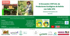 «Los SPGs fortalecen la producción y comercialización ecológica» La Fundación AGRECOL Andes, el Comité Nacional de Productores Ecológicos con SPG CONPESPG, SENASAG , la UC CNAPE,y el Maela Bolivia, invitan al tercer encuentro nacional de los Sistemas Participativos..