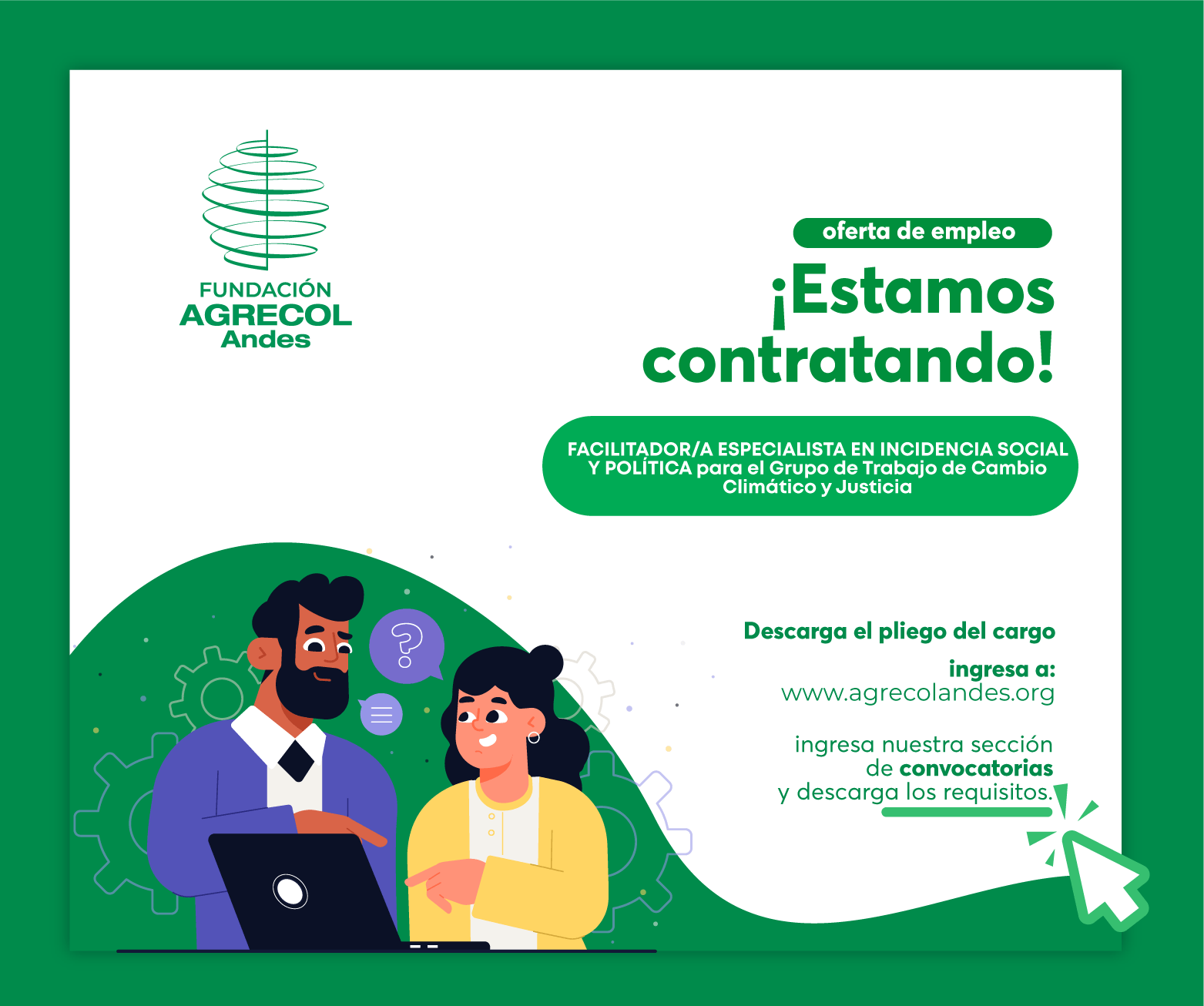 La Fundación AGRECOL Andes, requiere incorporar a su equipo de trabajo: FACILITADOR/A ESPECIALISTA EN INCIDENCIA …