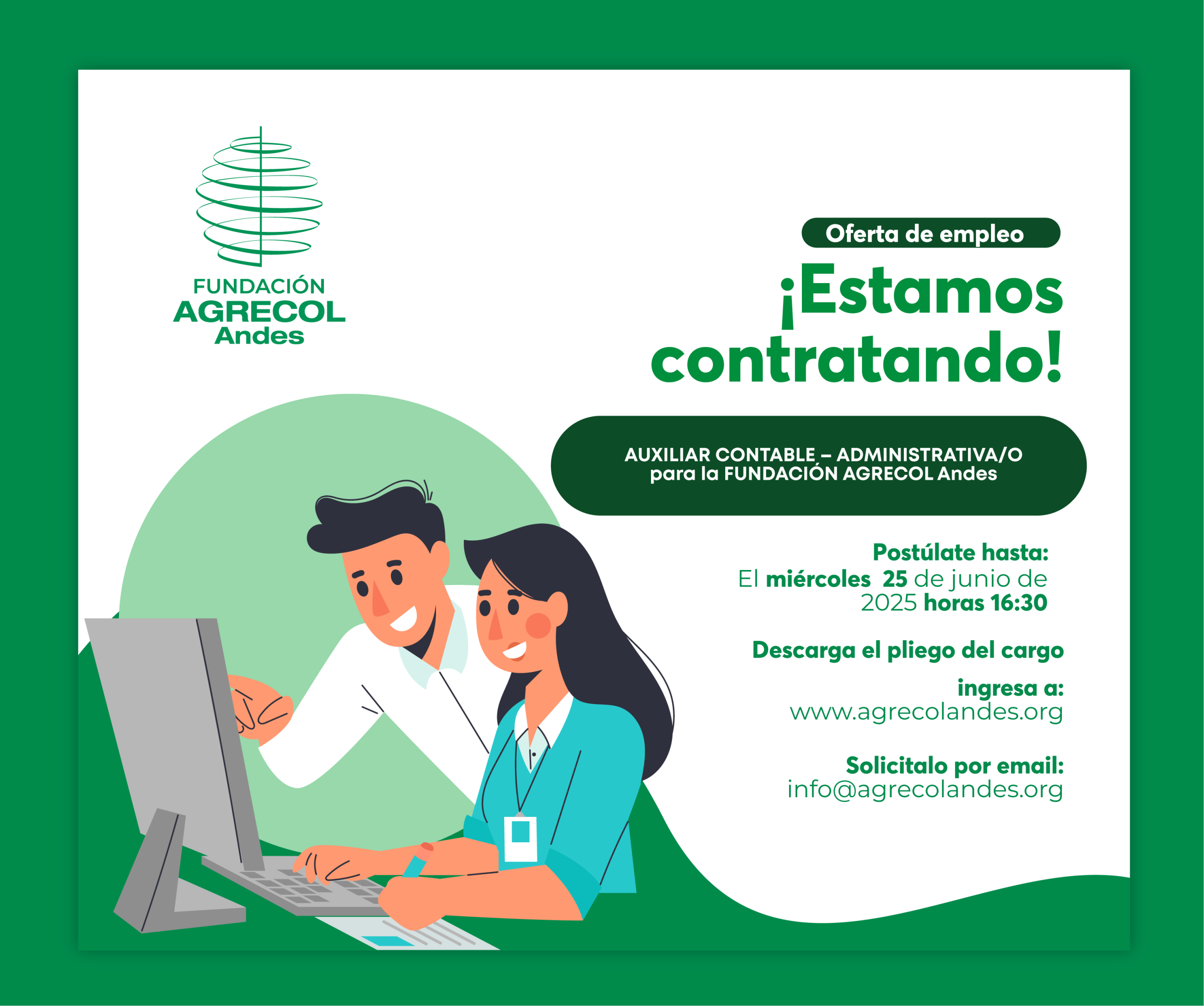 La Fundación AGRECOL Andes, requiere incorporar a su equipo de trabajo: Auxiliar de comunicación de …