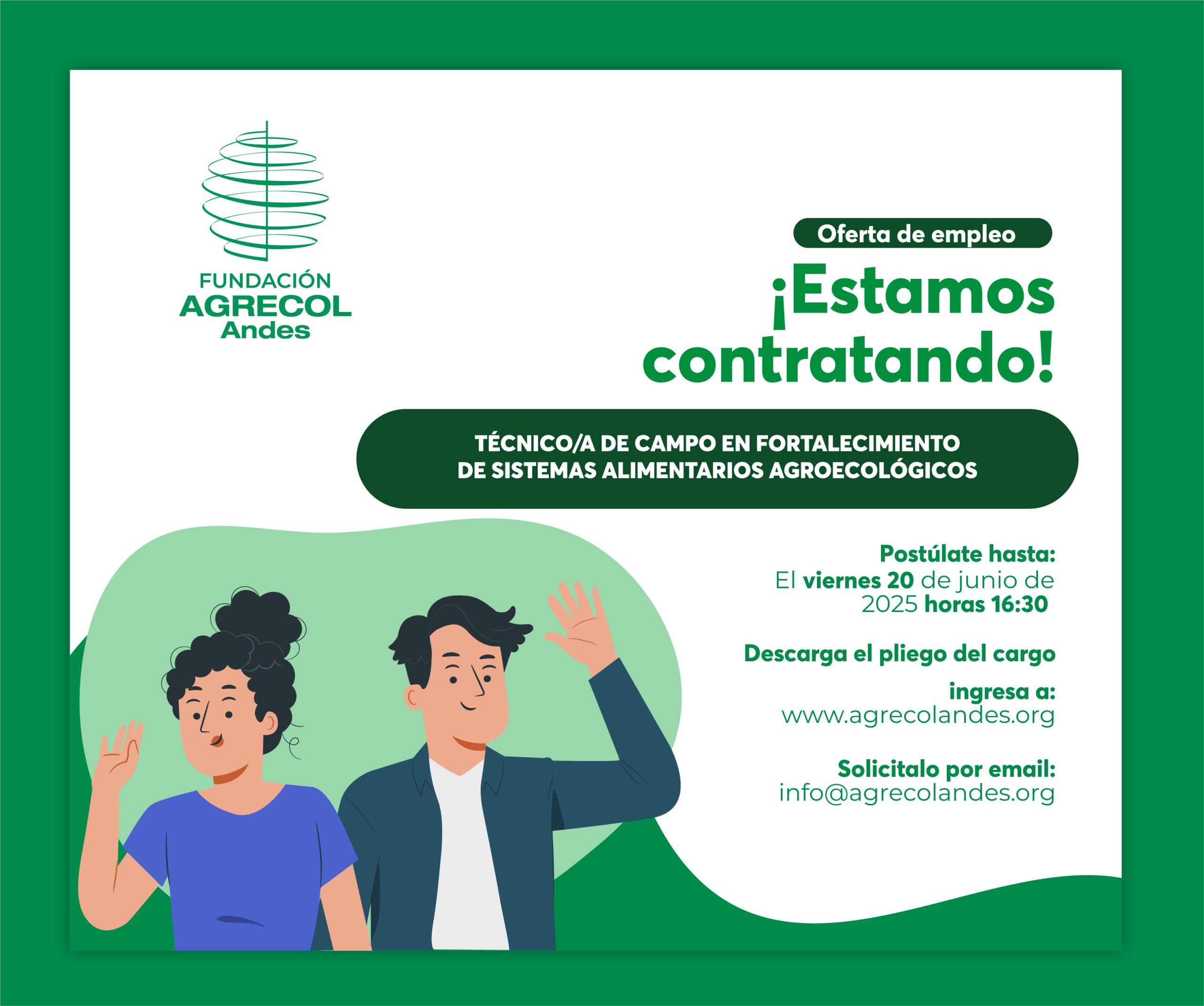 La FUNDACIÓN AGRECOL Andes, requiere incorporar a su equipo de trabajo: TÉCNICO/A DE CAMPO EN …
