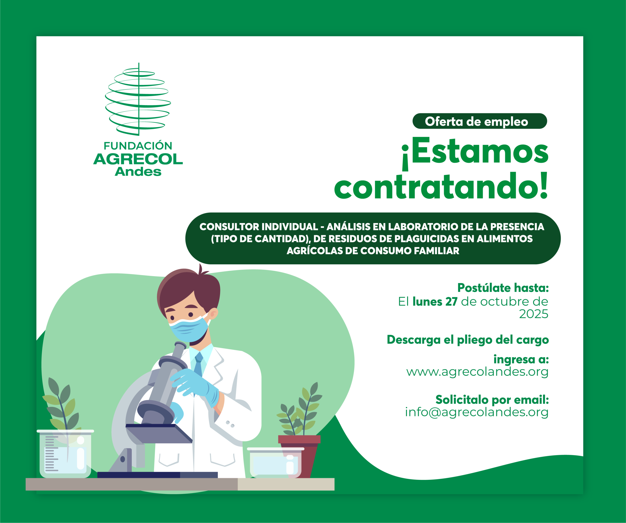 La FUNDACIÓN AGRECOL Andes, requiere Consultoría por producto en: ANÁLISIS EN LABORATORIO DE LA PRESENCIA …