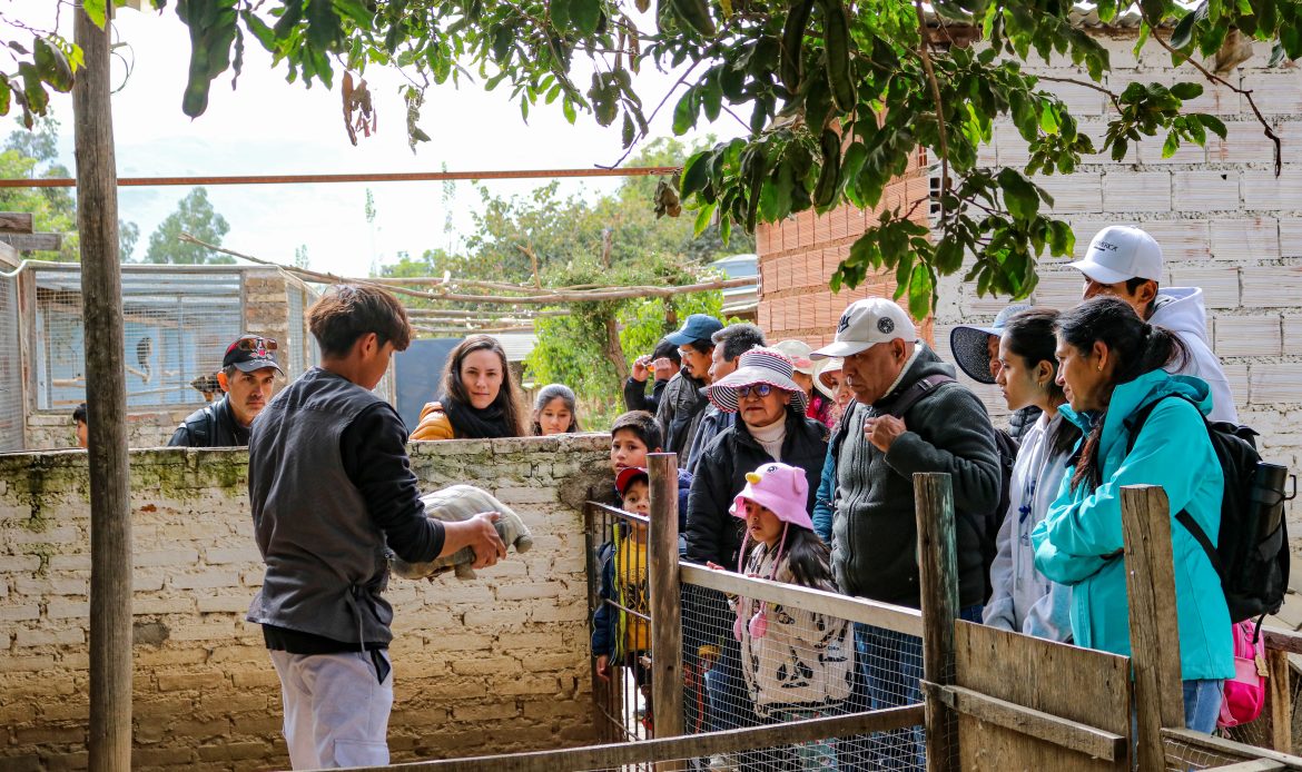 “Somos una granja autosustentable. Aquí producimos nuestros propios abonos, forraje y frutas sin utilizar químicos. Todo lo que cultivamos alimenta a nuestros animales”, explicó Cristian, guía de la granja Munay, destacando el enfoque ecológico del proyecto. “También trabajamos como centro de custodia para animales silvestres rescatados”, añadió.