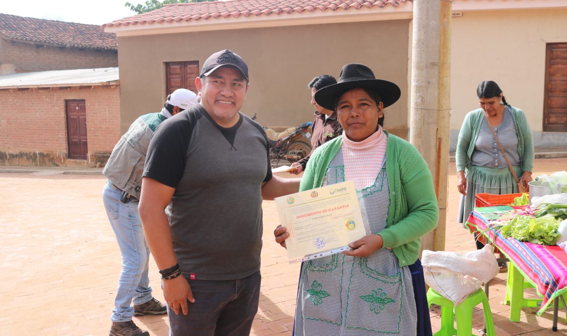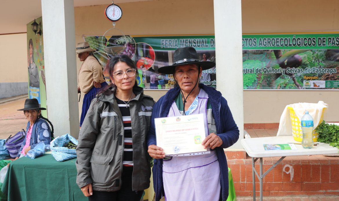 Noticias AGRECOL Andes (21/3/2025) Este viernes 21 de marzo se realizó con éxito la Feria de la Recova en el municipio de Pasorapa, donde las productoras de las comunidades de Seibas y Quinori participaron activamente ofertando alimentos frescos y transformados, 100% ecológicos. En el marco de esta feria, y gracias al trabajo coordinado entre Radio Esperanza y la FUNDACIÓN AGRECOL Andes, se llevó a cabo la entrega oficial de certificados de garantía SPG (Sistema Participativo de Garantía). Estos documentos reconocen que la producción de las OECAS cumple con los principios de la agricultura ecológica, libre de contaminantes, segura para el consumo y respetuosa con el medio ambiente. El certificado SPG está reconocido por el Estado Plurinacional de Bolivia a través del Servicio Nacional de Sanidad Agropecuaria e Inocuidad Alimentaria (SENASAG), en el marco de la Ley N° 3525. En esta ocasión, un total de 53 productores y productoras fueron acreditados con el certificado SPG: 29 personas de la comunidad de Seibas (20 mujeres y 9 hombres) y 24 de Quinori (13 mujeres y 11 hombres). El certificado SPG está reconocido por el Estado Plurinacional de Bolivia a través del Servicio Nacional de Sanidad Agropecuaria e Inocuidad Alimentaria (SENASAG), en el marco de la Ley N° 3525 de Regulación y Promoción de la Producción Agropecuaria Ecológica.