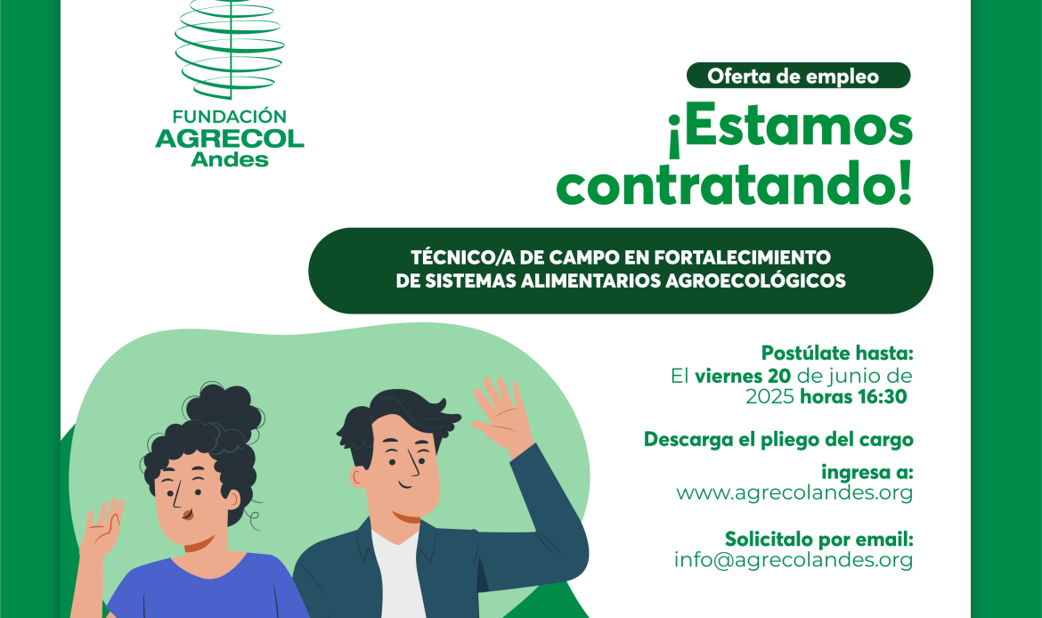 La FUNDACIÓN AGRECOL Andes, requiere incorporar a su equipo de trabajo: