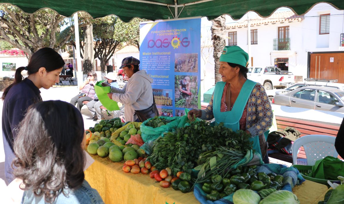 El recorrido concluyó en la feria central, ubicada en el Templo San Roque, donde una tradicional k’oa y una tarqueada dieron inicio a la actividad. Productores de La Paz, Cochabamba, Chuquisaca y Santa Cruz ofrecieron una amplia variedad de productos frescos y transformados. La FUNDACIÓN AGRECOL Andes participó con productoras del SPG Cercado de Cochabamba, quienes presentaron productos frescos, transformados y artesanías elaboradas con material reciclado.